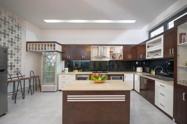 Biệt thự được thiết kế theo phong cách nghỉ dưỡng, với 6 phòng ngủ, (DT mỗi phòng ngủ > 20m2), 3 PK, 6 toilet, 1 phòng giải trí chiếu phim, Karaoke & Home Theatre, với màn hình 130 inch, quầy rượu, phòng ăn & bếp rộng.
