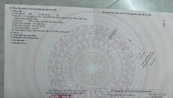 - Vị trí: trung tâm bên cạnh UBND Quận Liên Chiểu, sát đường Hồ Tùng Mậu, gần biển, tiện ích xung quanh đầy đủ, dân cư đông đúc, an ninh tốt.